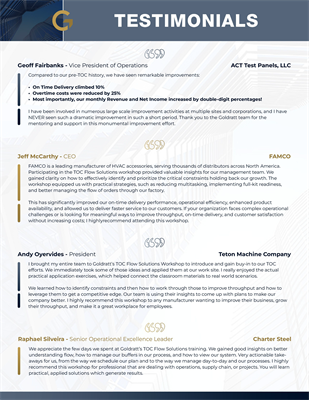 - Learn about Goldratt's TOC Solutions throughout the world via case studies